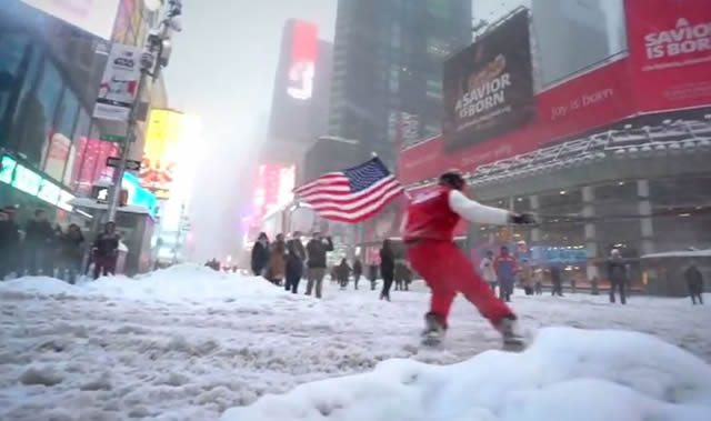 (图片来源:视频《画出我的人生 - Casey Neistat 》) 他本人其实就是一个很有创造力的生活家,他经常会DIY很多东西并记录发布出来,也会做很多冒险的举动,用来冲破日常生活的无聊感。例如有一次,他竟然在纽约遭遇暴风雪时在市区里玩起了滑雪。