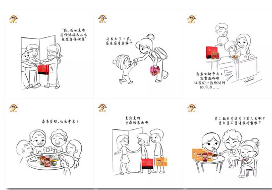 内容贴切 代入感强 姚太太的微博广告所提出的这些尴尬事,几乎我们所有人每年都会遇到,每个人都能与广告中的人物对标。未婚时面对亲戚不厌其烦的盘问烦到不想回家;有了孩子面对其他家长炫耀孩子成绩,对自己孩子的心疼;以及面对过年成群结队讨要红包的小孩,强颜欢笑的无奈,这些谁没有?广告几乎抓住了我们每个人的痛点,很容易在情感上与姚太太产生共鸣。试想如果带了姚太太回家,在面临这些尴尬时递上一包,是不是可以将这些尴尬统统化解?