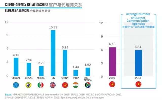 中国品牌使用的代理商减少了10% 由于中国市场主希望能找到可以提供整合服务的代理商来满足所有营销需求,自 2016 年起,合作代理商的数量持宣传片高清拍摄续减少。目前,平均每个市场主与 5.84 个代理商合作,相比于 2016 年 (6.45 个) ,减少了将近10%,这个数字在2014 年 是8.2 个。SCOPEN 董事长兼首席执行官 César Vacchiano 表示:“中国市场的规模及营销复杂度,使得代理商更难将不同领域的顶尖人才集结起来。