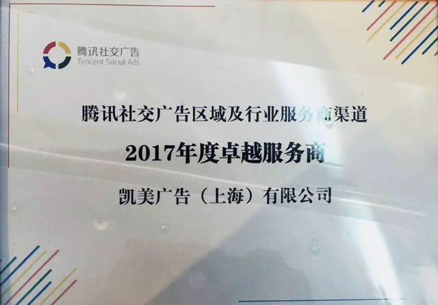 2017年度卓越服务商奖项 广告作为核心服务商,在成为腾讯社交广告渠道合作伙伴后,凭借迅速的市场开拓和出色的服务能力获得了包括“2016年度腾讯社交广告卓越服务商奖”及“2016年度腾讯社交广告优秀区域开拓服务商奖”在内的各个奖项。今天广告再次荣获“2017年度卓越服务商”奖项可以说是实至名归。
