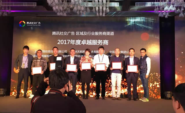 集体合影留念 对于再次荣获"2017年度卓越服务商"深感荣幸,腾讯社交广告确实拥有当下最炙手可热的社交平台,充足而优质的社交流量。