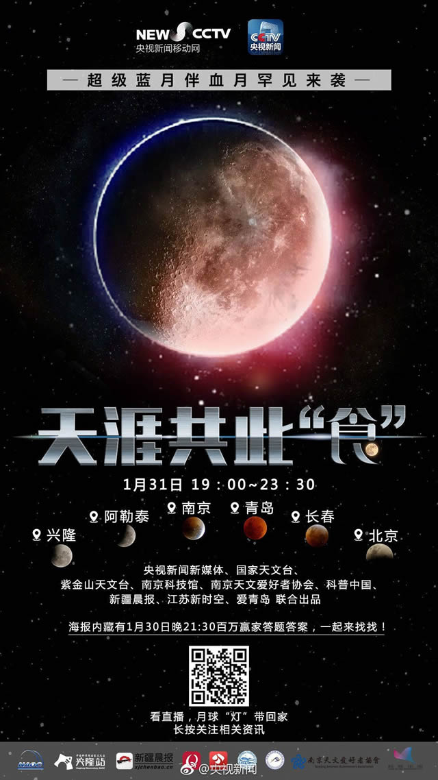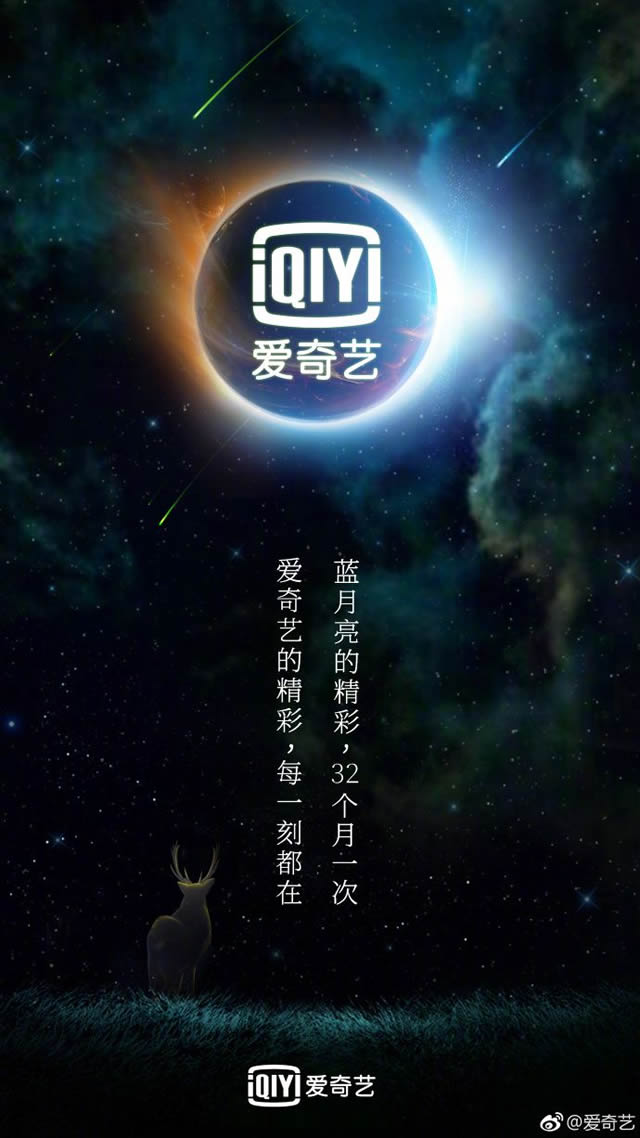 爱奇艺 今晚,蓝月亮、月全食和超级月亮三种天象将一同出现在天幕[太开心]。其中,蓝月亮每32个月才出现一次。在世间的每一个精彩里,爱奇艺与你同在[心]。
