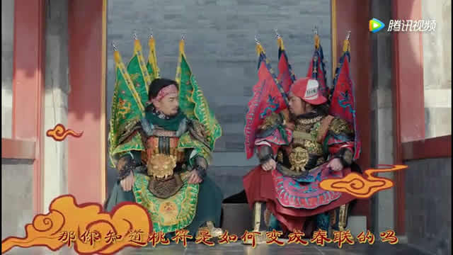 神荼: 宋人的春节 依旧是新桃换旧符 直到大红的纸张加推推广 替代桃木 郁垒: 春联出现在明朝初 神荼: 因为有个酷爱对对子的明太祖 微服私访提笔赠联名垂千古 从此没有改变贴春联的习俗 郁垒神荼: 千百年墨宝令后人拜读