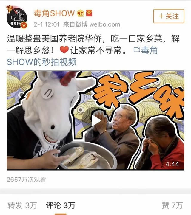 它联合了一批美食、情感、搞笑类的女性大号——因为每日优鲜70% 以上的用户是女性——如@仲尼Johnny、@罐头视频、@毒角show、@野食小哥、@张猫要练嘴皮子、@人类实验室等,就“不寻常的家常味”命题作文,从娱乐、搞笑、测评等各个角度创作相关内容,延伸出多元话题,以真正不同的方式将“每日优鲜=不寻常的家常味”植入用户心智。 @人类实验室一直专注人与人情感联系,这次它为每日优鲜二次创作了一个“妈妈的黑暗料理”的故事,引发了人们的共鸣。
