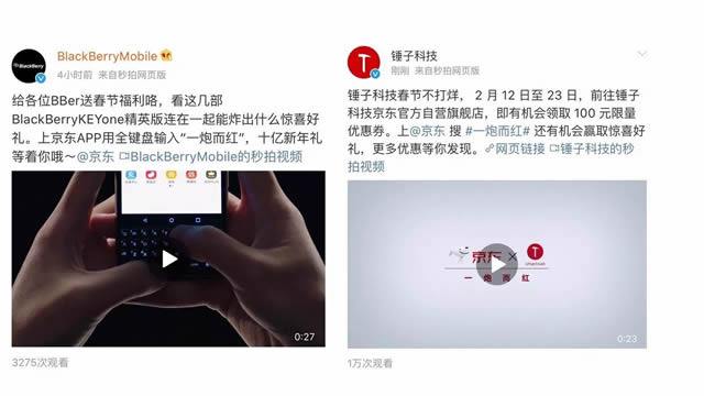 只从创意论,多屏互动机制,点出新年团聚属性,奖客户危机公关励激励是实打实优惠。只聚焦用户层面,一炮而红都足以凭借新年味,带起一波热度。 而京东,明显不想止步于H5刷屏。凭借厂商联合,冲出大众层面,强调年货节带货、赋能等特性。最终实现自己渠道下沉,拉新用户的切实目标。 品牌力max,教科书级别的接力营销 京东引领品牌炸系列,与自己附能厂商的思路有关。黑莓、360、魅族、OPPO、vivo、锤子……携鞭炮,鳞次栉比在消费者面前刷脸求赞。 是“机友联盟”为京东站台,也是京东借力自己打造的新年热点,为厂商量身定制了一次刷好感度的机会。