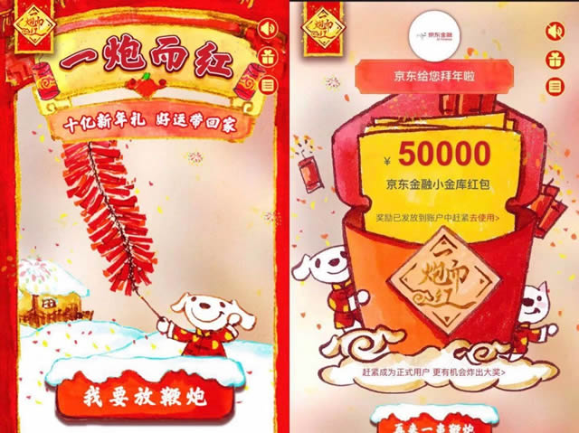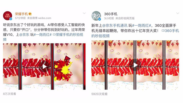 (荣耀 360) 做营销,能凭借创意核带起社会热点已是少见。京东,让合作品牌化身用户,做出跟热点的萌态,再借助品牌自有传播力,带动大众挑战H5玩法,环环相扣,可见功底。 一炮而红,社交基因奠定跨界属性 近年来,大众高喊传统年味变淡的声音渐高。此前摇一摇得红铜陵小程序包、H5拜年、集福等一波波能引发全民参与的创意,也让春节营销无形中成了新年味的创造者。 比起“单机版”H5,社交基因强是京东炸鞭炮的最大特点。瞄准春节聚会场景,参与路径上专设好友邀请环节,需两只以上手机,才能连成鞭炮,炸出现金、品牌优惠券等礼物。