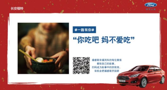 通过这次活动,福睿斯在很多人心中已不只是座驾,而是成为了一个温暖的情感符号,一个幸福使者的代名词。基于品牌自身价值与“春节阖家团圆”之间的契合点,福睿斯不仅凭借自身资源优化了人们回家的体验,而且巧妙地利用有限的线下空间和更具开放性的线上渠道传递温情,并让更多人参与到这场温情的接力中来,最终引起每个归乡游子的情感共鸣,为即将到来的新春增添多一丝温暖。
