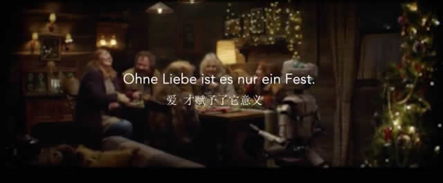 这支广告片中为受众带来的视觉体验,与艺术家山姆·史密斯创作的歌曲《宫殿》相结合,也可算是苹果广告片中的另一种创意。不过也可看出,苹果在AirPods上的传播似乎比辛苦iPhone X还要重,不知是不是AirPods的销售额不尽如人意的原因?不过在观看视频的过程中,小编一直担心男女主人公的耳机会因为剧烈的活动而掉下来……另外,这支广告片并没有给人留下圣诞节的深刻印象,反而比较像情人节的宣传广告呢。 德国超市EDAKE《爱,才赋予了它意义》 在一个已经被人工智能占领的世界,人们纷纷逃离,街道、商场都变得破败不堪。