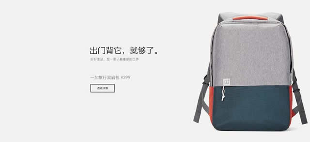 近日, OnePlus 5T则携手迪士尼在印度、北欧发布了OnePlus 5T星战版,用于迎接12月15日即将在美国上映的大片《星球大战8:最后的绝地武士》。通过与星球大战的IP合作,OnePlus想要呈现出他的超高性能和顶级配置。 OnePlus 5T星战版的机身颜色,采用了全新的“砂岩白”,这是一种特殊的砂岩材质,用手摩挲能够感受到机身表面细微的颗粒感,像极了“最后的绝地武士”中的Crait 星球,一个被白盐撒布的矿物世界。而作为星战8的重要颜色——矿石红,则被运用至手机背部的星战LOGO及三段式按键上。 不追求无意义的曝光,更追求给用户带来的感觉,令OnePlus进入了一个商业植入的良性循环和高端典范——品牌露出,用户看到,用户信服,用户关注。这样的良性循环对于品牌和被植入方,都是双赢的效果。 2、超越产品本身的品牌附加值 在每个品牌都在讨论“生活方式”的今天,什么才是真正的生活方式?并不是嘴上说说而已,想要付诸实践让品牌真正成为一个生活方式品牌,所付出的要比想象中多得多。 OnePlus双肩包受欢迎程度可能已经超越了手机,甚至有网友戏称OnePlus为“一加皮革厂”——一家能把双肩包做得超级好的手机品牌。而OnePlus也挺欢迎这样的标签,同时也在不遗余力地推出各种各样的生活周边,比如笔记本、旅行袋、皮夹等等。