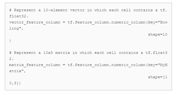 图 3.特征列函数可以归入两个主要类别和一个混合类别 我们来详细看一下这些函数。 数值列 鸢尾花分类器为所有输入特征调用了 tf.numeric_column():SepalLength、SepalWidth、PetalLength、PetalWidth。尽管 tf.numeric_column() 提供了可选参数,调用不含任何参数的函数仍是指定具有默认数据类型 (tf.float32) 的数字值作为模型输入的一种极简单方式。例如: