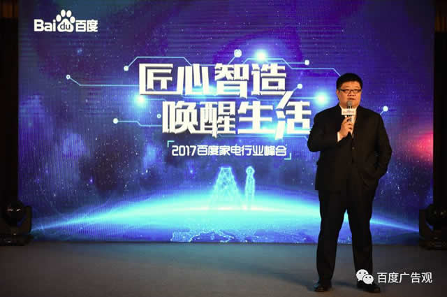 2017年12月26日,“匠心智造唤醒生活”2017百度家电行业峰会,于上海威斯汀酒店成功举办。本次峰会,邀请了家电行业几十位嘉宾均出席,共同探讨AI时代品牌营销新价值,打造行业品牌影响力,携手探寻未来智能营销新方向。 AI唤醒万物建立品牌差异 百度大客户部直客和整合营销部总经理陈一凡带来了精彩的开场致辞,分享了百度在人工智能营销领域的全新变化。对于未来人工智能时代的家电行业营销发展之路,陈一凡先生表示,随着用户习惯转变,需要建立品牌形象差异化,而百度拥有天然的技术基因,一直致力于前沿科技的研究和商业应用,不仅拥有精准的人群画像和用户人群筛选,同时配合线上过亿用户产品和线下聚屏产品,将为家电行业在新时代营销路上创造更多发挥空间。