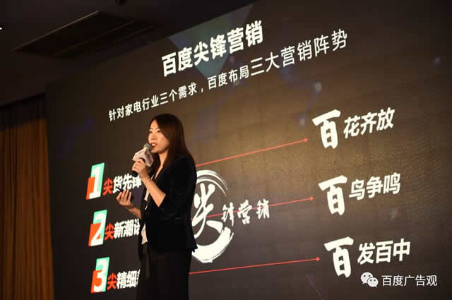 百度大客户部直客和整合营销总经理陈一凡 深度洞察行业先机 产品联动创新业态 百度团队现场分享了在人工智能时代,百度媒体平台新定位及战略价值分享、家电行业大数据洞察、家电行业新营销与策略案例等方面内容,与到场嘉宾共同探讨通过百度产品如何做好品牌营销三大时刻,如何打破线上线下营销边界,向客户传递行业发展现状与未来趋势,让到场嘉宾感受到智能品牌营销无限魅力,同时更清晰了解到数据背后所反映的消费者购买行为趋势和行业机会点,为后续优化品牌营销策略提供了重要的决策依据,精彩主题分享引发了在场嘉宾的浓厚兴趣。