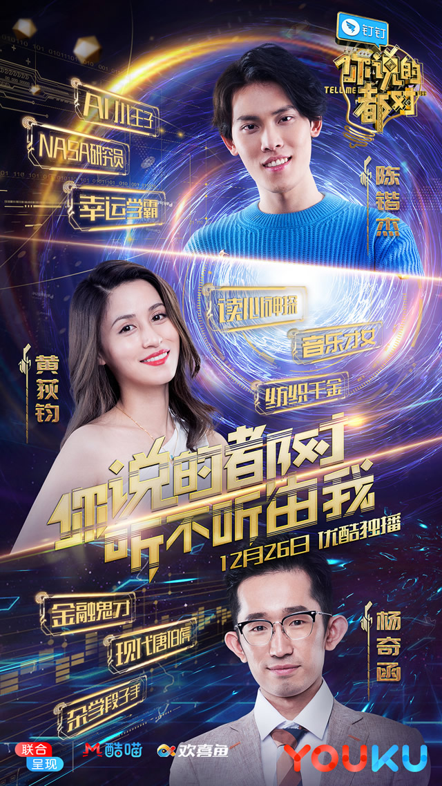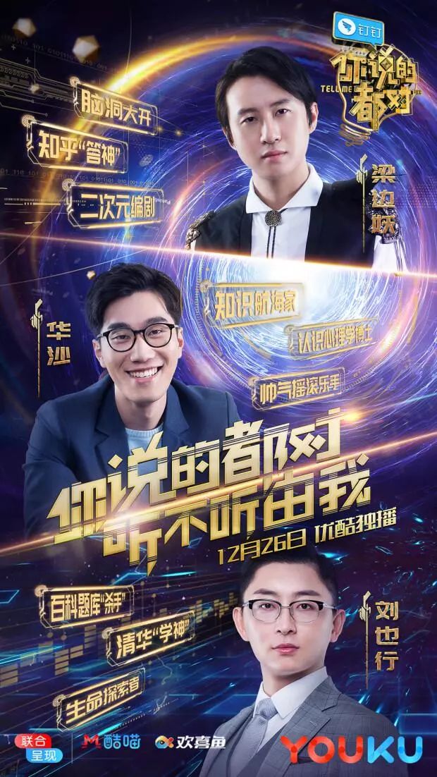 由优酷和欢喜鱼文化联合出品的全网首档脑性时代知识偶像问答真人秀《你说的都对》终于和大家见面啦!作为蔡康永在内地主持的首档文化综艺,《你说的都对》就像一个被寄予厚望的孩子,将以颠覆性的节目形态重新定义“知识网综”:用知识与笑声串联起当下的社会热点和那些被视为“奇葩”的社交问题,让观众收获更多有价值的笑声。