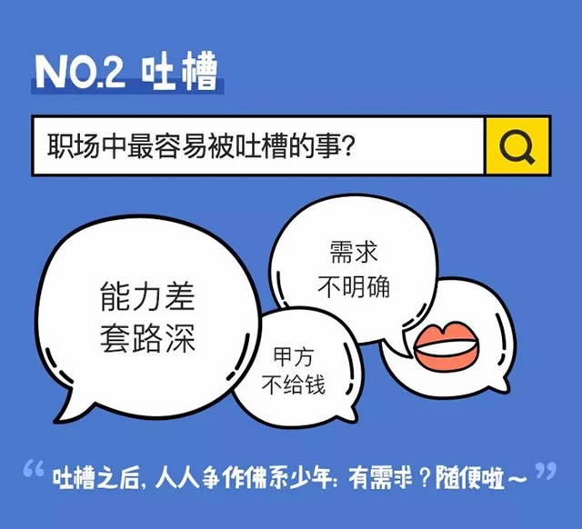 No.2 吐槽 以为自己已经是个佛系青年“随缘改需求,你说啥是啥!”但看着被退回来的第34稿,还是忍不住说了一句“MMP!”