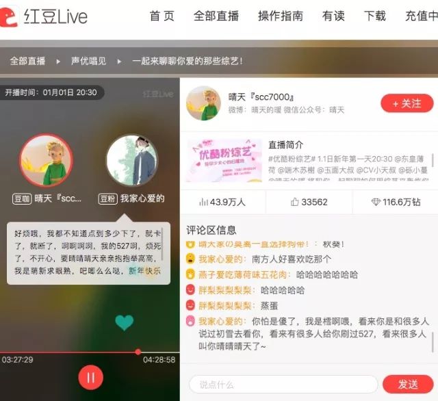 声优主播“晴天『scc7000』”在红豆Live上发起的“聊聊你最爱看的综艺”话题讨论,和女生们一起探讨美食、时尚、爱情、八卦等共同喜欢的话题,引起了近44万人的关注,评论区活跃十足,大家纷纷开启了对心水综艺节目的表白模式。 在评论区中,有人谈到喜欢《爸爸去哪儿》《小手牵小狗》,因为节目中萌宠逗趣,趣味十足;有人喜欢《锋味》《极限挑战》,因为看喜欢的爱豆相当解压;有人喜欢《爱的时差》《青春旅社》《生活相对论》《疯狂衣橱》……而这些综艺节目的共同点,就是都暖心又不虐心,可以让疲惫和厌倦的现代人迅速感到放松和精力满格,优酷粉综艺就是在这样的需求下应运而生,集合各种暖心综艺节目,让各种少女心都找到归属和满足。
