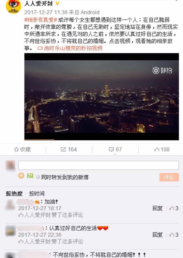 消时乐这部微电影受到了年轻人的喜爱,并引发了广泛的话题讨论,目前视频博文阅读量827万;秒拍平台视频播放量428万,下面笔者就为大家全面复盘一下消时乐这次互联网传播大戏的精彩看点。 一 微电影(相亲篇),开启话题热论