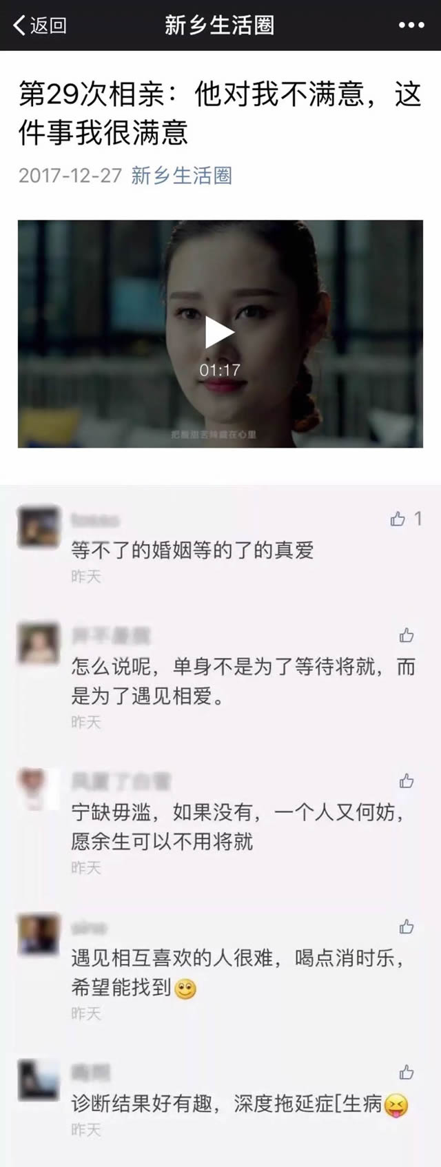 瞄准年底相亲季,利用“相亲”与“真爱”之间天然矛盾,制造话题传播点,开启“相亲会不会遇见真爱”的讨论话题,消时乐站在了“相亲有真爱”的角度组织全渠道传播,成功引爆了话题。 点击视频 观看她的相亲故事 二“治愈小毛病,回归小确幸”创意H5,延续传播势能