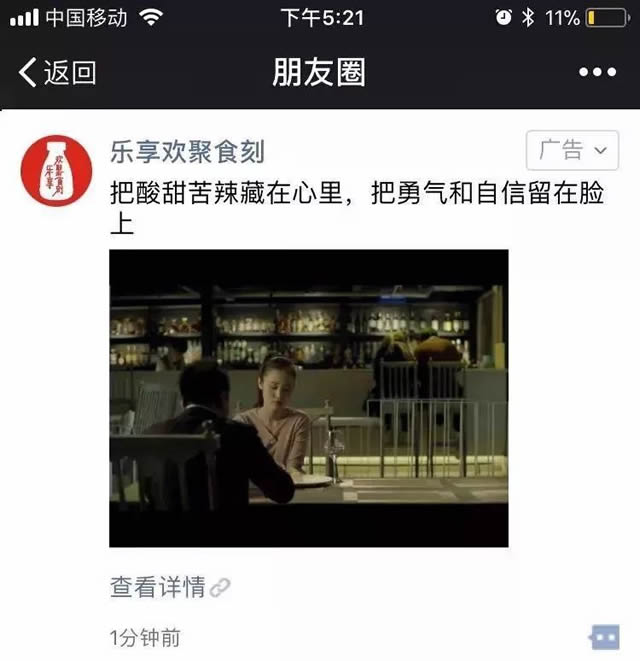 在微电影热传的阶段,消时乐顺势推出了微电影(完整版)——UGC互动海报,进一步引发品牌与受众的情感共振,实现深度互动,让消时乐品牌更具温度和魅力,进而为消费动机转化做了很好的铺垫。 四 朋友圈广告发力,全面覆盖重点市场 作为移动端的巨大流量入口,微信整合数亿级优质用户流量,而微信朋友圈广告基于微信生态体系,以类似用户朋友圈原创内容的形式,将品牌信息直接触达目标人群。