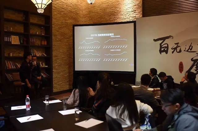 互动过后,百度上分大客户服务部机械制造行业经理江飞为大家带来了2017机械行业分析,重点探讨在百度后端我们如何进行关键词的投放深耕;如何利用媒体工具,分析品牌及潜在用户关注点,了解目标用户关注的信息更全面、更有质量;如何进行广告差异化的呈现等知识要点,教会客户们如何环环相扣,步步攻心。干货满满的分享赢得来宾们的阵阵掌声。