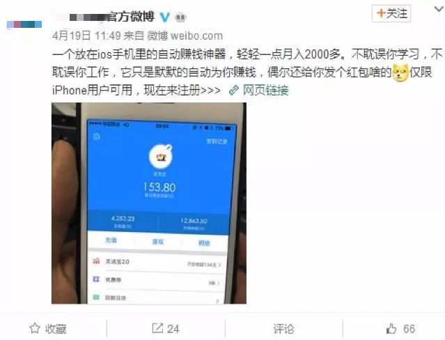 产品线:微博粉丝通 素材分析:真实性文案,性价比高。真实数据配图,具有一定说服力,仅iphone用户使用,优势明确,目的精准。 投放效果: 转化注册率达到50%,ROI转化率142% 总结:如果你家产品对照上面表格的要求资质全面,那么这一波开放,一定不能错过,政策说变就变,而识时务者为俊杰!