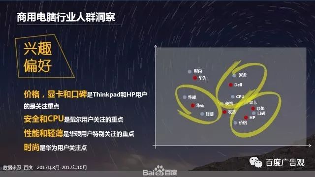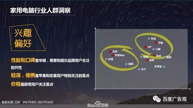就关注点而言,轻薄,便携是苹果和宏基用户特别关注的重点;性能和口碑是华硕,惠普和戴尔品牌用户关注的共性;价格是联想用户关注重点。