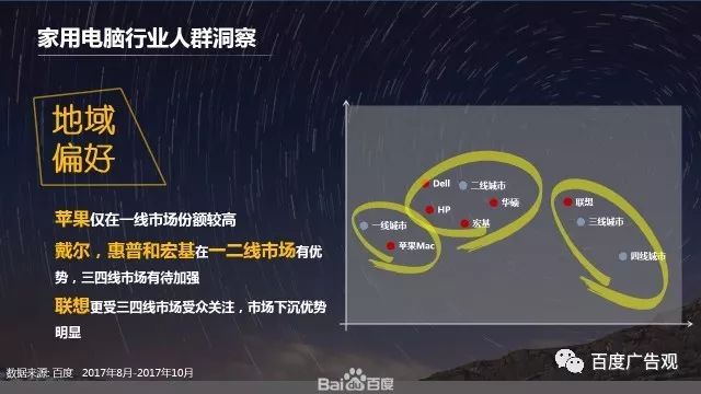 从市场分布来看,国际品牌倾向于一二线城市,联想的市场下沉优势明显。