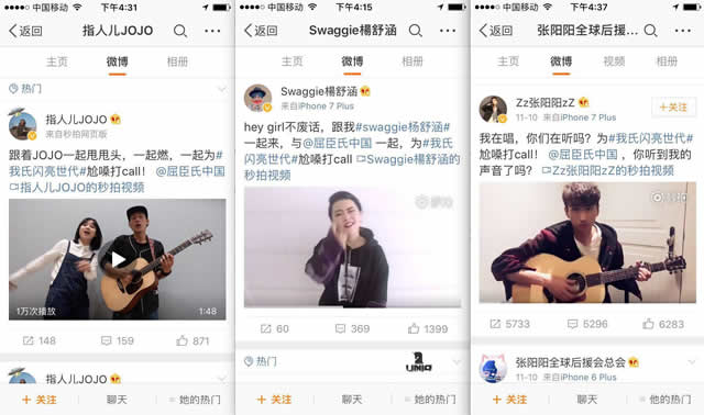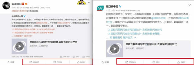 而屈臣氏承借着这个势头在官方微博中发起了翻唱活动,呼吁年轻人一起来为#我氏闪亮世代#尬嗓打Call,瞬间#我氏闪亮世代#的话题热度上升至三千多万。随后,屈臣氏会员卡代养人杨洋也转发活动微博以示激励闪亮世代,把活动推向了最高潮。