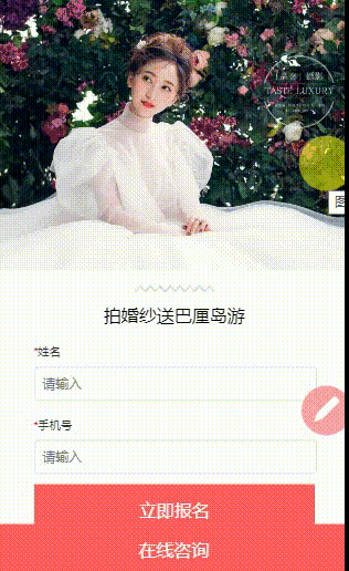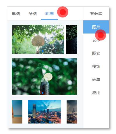 还有一个常常被大家忽视的套装,就是轮播。轮播可以在有限的地方露出更多的信息,并且【灵动·落地页】的轮播支持动图上传,使用动图轮播会让落地页更有动感呢~