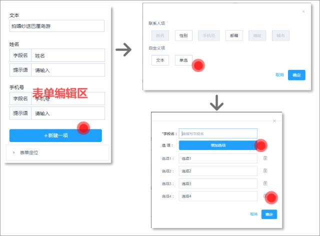 锚点定位效果演示 有了锚点定位功能就可以最大程度保证每一个有意愿的用户填写表单啦~ 表单单选 此次更新后【灵动·落地页】中的表单套装可以添加单选项啦,表单式样更灵活,可以满足更多用户线索搜集需求。在表单编辑区选中【新建一项】,在弹出的小窗内选择【单选】,编辑问题和选项即可。选项默认为四个,可以自行增减~