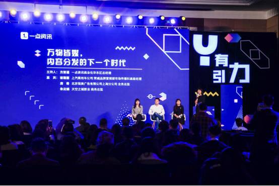 一点资讯全国营销中心总经理于正(中)、一点资讯招商策划总监梁星宇(左)与一点资讯内容策划总监熊艳(右)讲述“Y+X”的媒体联盟式合作