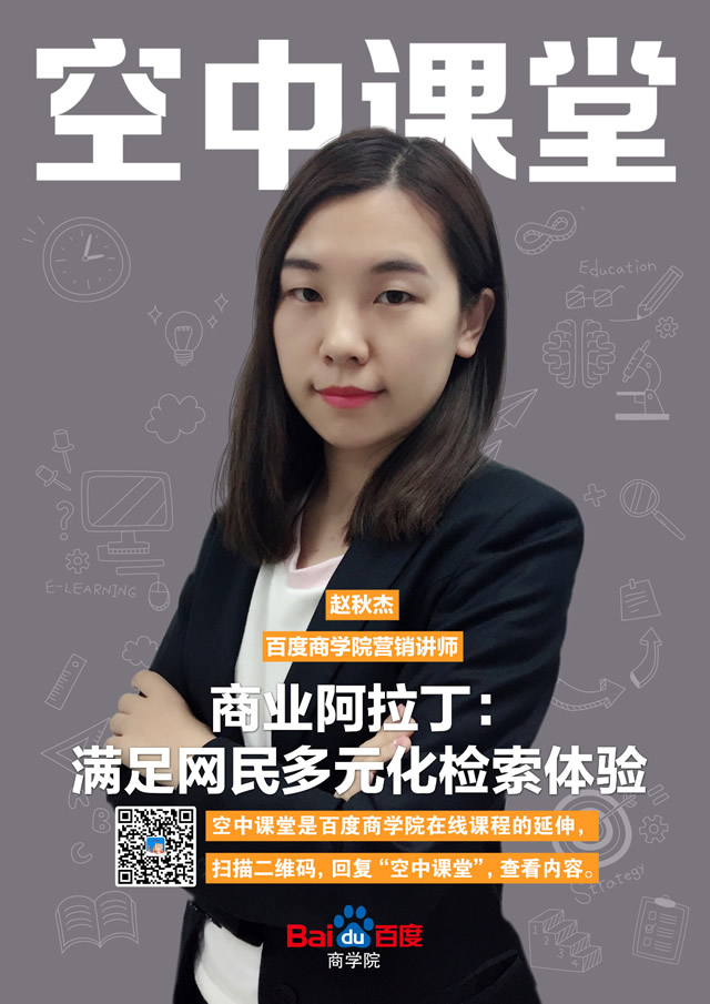 各位企业家朋友们,大家好!欢迎收看本期百度商学院《空中课堂》。我是百度商学院营销讲师赵秋杰。今天给大家分享:商业阿拉丁产品介绍。