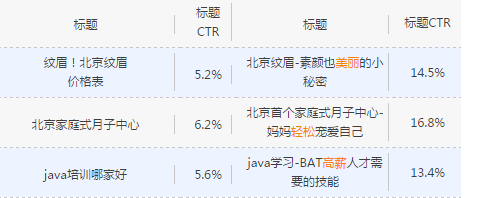 从以上标题可以看到,CTR高的优质标题都有对人的本能或基本欲望的刺激,如美丽、轻松、高薪等。这些词语,直接影响我们的第一反应。 简单点说,就是标题中需要有直接能刺激到爬行脑的多个关键词,不需要分析,一看就“触电”。这类词还有: 警惕、严重、有效缓解、轻松治愈、好方法、有效方法、妙招、专家解答、亲诊、技术突破、进口、安全隐私、聚拢、高端、优秀、舒适、领先等等。 客户朋友们可以多做这样的训练: 选择一个搜索词,查看搜索结果,选出你最想点击的创意,提炼标题中的兴奋点。将这些兴奋点用在自己的创意中。 另外,还有一些技巧可以用于标题的撰写中 1. 用户移情:即从网民角度出发,了解网民的痛点和诉求。 如“没有本科学历就不能高薪么,**教育助你获得更好的人生”。 2. 突出利益点:告诉网民做了就会得到什么好处。 如“20分钟的纹眉,给你带来美的进阶”。 3. 表达不作为的困扰:通过网民目前的困扰或不舒服的状态切入。 如“还在为牙痛烦恼吗?” 4. 寻找背书:通过品牌或销量的背书,降低网民的选择成本。 如“北京市5万妈妈的选择,**月子中心给你安心”。 5. 有明确的数字:通过量化的数字,让网民更有感知。 如“75%选择了**培训的学员,工资都涨了60%”。 另外,为保证网民的体验,标题与落地页内容应有较高的相关性,以免造成“标题党”的不良体验。可以从以下几方面是否检查。 1.标题是否是落地页内容的概括或总结。 2.标题表达的内容是否能从落地页中找到相对应的介绍或者描述。 3.标题表达的内容是否与落地页内容表达一致,如具体数字是否一致,结论是否一致。