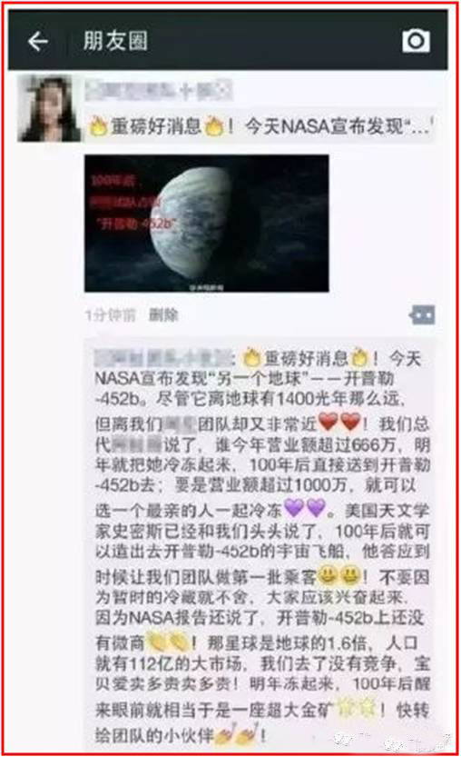 怎么样,多么牛逼的微商大咖啊。她们会见马云,会见比尔盖茨,会接受CCTV的采访,还会去开拓外星球……,请看下图中的文字: