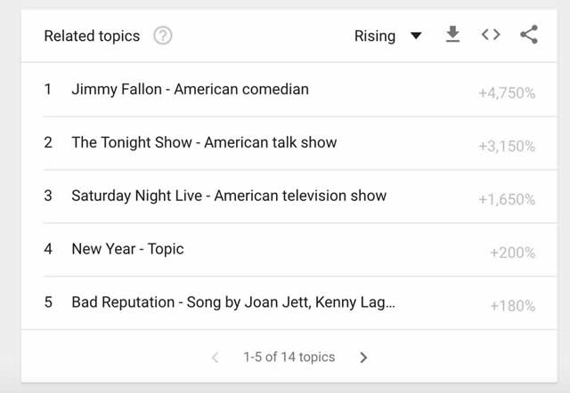 如果我们调到“图片搜索”选项,我们就能看到搜索量暴增700%的图片热搜是她参与的另外一档节目“Saturday Night Live”。
