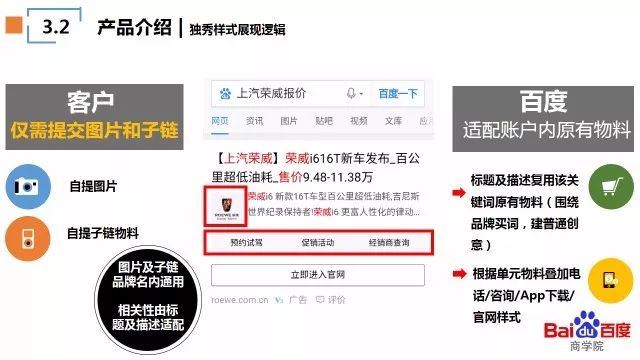 独秀样式如下图所示,客户仅需要提交图片和子链石家庄舆情信息内容,百度会适配账户内原有物料进行搭配。