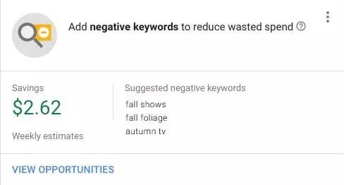 优化建议举例:添加否定关键字,这样能够避免不相关搜索,为你省钱。