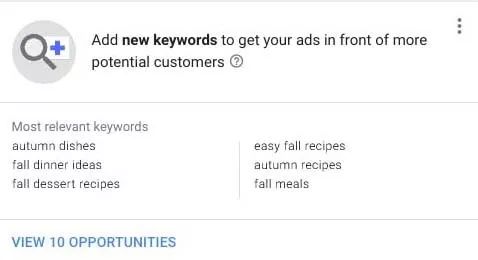 建议添加新的相关关键字,以覆盖更多在 Google 上进行搜索的潜在客户。