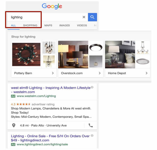 如上图所示,访问者搜索“灯济南代运营公司有哪些具”,图文并茂的橱窗购物广告就出现了,很难不注意到它。只要访问者点击,广告就会展开,展开后的广告页面包括了你的广告标题、标题大图片、网址、产品描述和产品陈列都包括在内,信息非常全面。