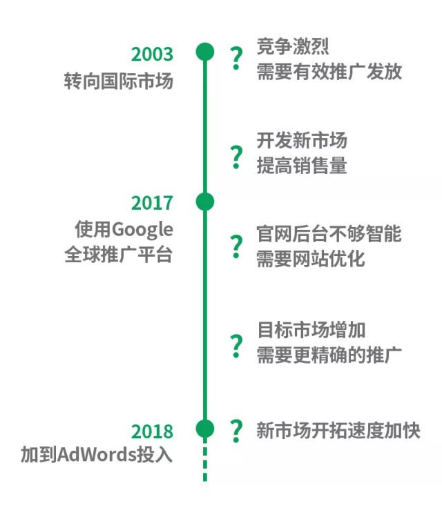 华宇橡塑在接触Google AdWords之初便已经初步计划好新市场的开拓方向,由此也出现了许多新问题和新需求。 从2017年起,华宇橡塑全面引入 Google 搜索广告,开启了快速的海外推广阶段。而华宇橡塑通过Google增加市场覆盖面,扩充对南美等新市场的推广任务。同时华宇橡塑的询盘量剧增,在跟进过程中却出现了回复较少的问题。 因此华宇橡塑在不断拓展市场覆盖面,增加目标市场的过程中,制定了以下任务: • 增加询盘数量,提高质量 • 巩固传统市场,开拓新市场 • 进行官网后台功能优化,联系方式优化