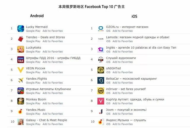 网络广告的趋势是全球化,企业的商业战略也在朝着全球化的方向前进,网络广告的投放也是面向全球市场,近几年俄罗斯、印度、印度尼西亚、沙特、巴西等新兴市场也正在越来越多的受到各大广告主的青睐,今天我们为大家汇总了Facebook本周在俄罗斯、印度、印度尼西亚、沙特、巴西等新兴市场上TOP10的广告金主,给大家做参考,便于各位了解目前国际新兴市场的互联网广告的趋势,便于各企业制定合适的营销策略。