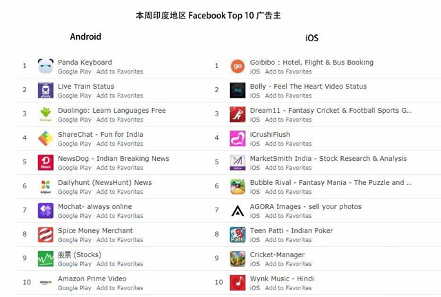 2、印度市场本周FacebookTOP10广告主莆田网站开发