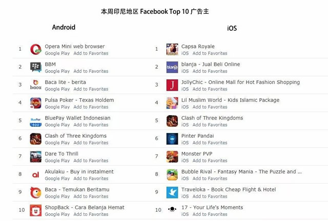 3、印度尼西亚市场本周FacebookTOP10广告主