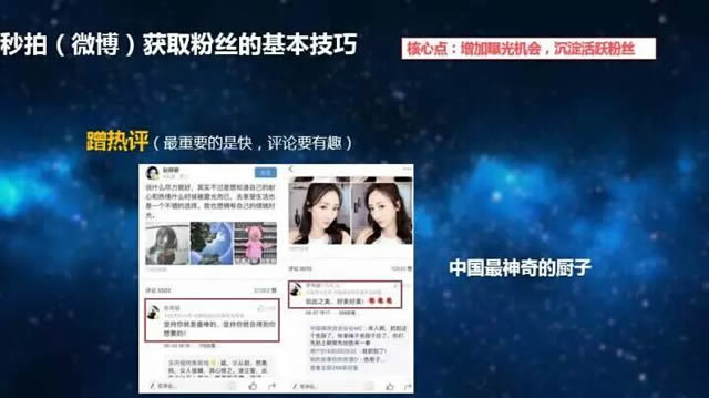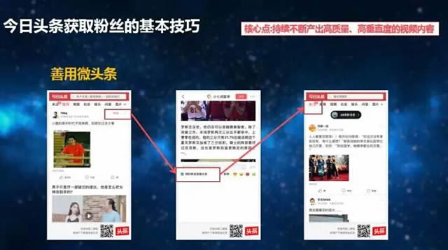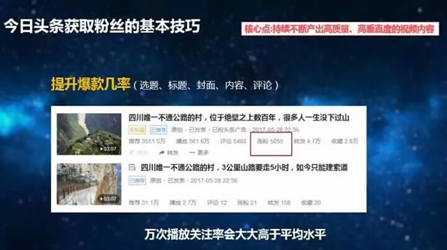 各个平台获取粉丝的技巧与成本 获取粉丝的第一步,是要明确能够沉淀粉丝的平台,按照价值大小划分:微信/QQ公众号/QQ空间、微博(秒拍)、美拍、今日头条。 微信/QQ公众号/QQ空间获取粉丝技巧 核心点:提前布局,有所为有所不为 微信公众号快速加粉丝方法:百万级爆款 or 巨额投放。 现在做微信公众号粉丝有几个难点: 第一,打开率持续降低; 第二,获取成本很大; 第三,短视频在微信公众号目前并非主流。 未来可以重点关注QQ公众号、QQ空间,提前布局。 秒拍、微博获取粉丝技巧 核心点:增加曝光机会,沉淀活跃粉丝 1.增加曝光量。之前在第一节的流量提升线上课程提到过,有4种方式可以快速提升流量,从而让粉丝转化下来。绑定MCN机构,参加官方活动,大号转发,商业资源购买,如粉丝通。 (1)争取大号、微博官方机构的转发带来粉丝效果最好。理由很简单,他们的粉丝多,活跃的粉丝多。 (2)微博的商业资源有效利用。比如粉丝头条、微任务等,也会带来粉丝的沉淀。需要注意有一点的是,秒拍的粉丝是跟微博粉丝几乎是同步的,即微博有多少量级的粉丝,基本上秒拍就会有多少,增长的曲线跟微博的播放量也一致。然而流量不一定会带来粉丝的或者说,流量带来的粉丝转化太慢。 2.有奖转发。需要注意两点:第一,计算好投入和产出;第二,用转发带来的粉丝,要与自己的目标粉丝相匹配。微博抽奖形式主要有三种:1.关注+转发;2.转发+@好友;3.盖楼形式。 3.蹭热评。案例:海尔,今日头条有个专门在模特微头条下第1个评论) 在今日头条,有一个厨子,叫做李奇斌,他经常会抢到一些明星、大胸模特发布的微头条的第一条评论,以此吸引了80多万的粉丝。 4.微博运营拟人化。目前微博千万级大号,基本都是“人”在运营,不管是真人还是拟人。在微博上的人,最关键的是要“有趣”。不管你的节目是八卦的,严肃的,还是正统的,在微博上,都要有一个这样的“人”存在,粉丝才会增长的快。 5.在其他平台的引流。将所有平台的流量引向微博是目前普遍的一个做法。引流的主要方式主要有:片尾露出微博号、未播出内容(如花絮)引导播放、粉丝福利,给微博最好的引流方式是直播。 6.建立官方粉丝群、提供福利。学习明星,建立自己节目的粉丝官方后援团,粉丝管理粉丝,粉丝号召粉丝,粉丝之间的口口相传,粉丝的创造力,是惊人的。 案例请参考,刚出道明星的后援团是如何运作的。 美拍获取粉丝技巧 核心点:将专注女性用户喜欢的部分单拎出来 1.上热门增加曝光量。(大号带小号,话题运营,官方活动)美拍获得流量最好的方式就是上热门,关于美拍上热门有很多技巧,主要包括话题运营,参与官方的活动等。因为美拍采用的是“算法+订阅”的推荐逻辑,因此,美拍上也存在马太效应,粉丝越多,越头部的内容,上热门的几率越大。 2.突出女性用户喜欢的人的元素和才艺元素。(帅哥、美女)(美食、美妆、舞蹈、搞笑)美拍是一个以女性用户为主题的短视频平台,这就决定了教用户如何美(比如美妆,颜值美;舞蹈,气质美;美食,生活美;帅哥,爱情美等),便会抓住女性用户的心,谁抓住了这一点,谁的粉丝增长就会快。 3.建立官方粉丝群、提供福利。粉丝在美拍的推荐逻辑里,仍然占有非常重要的地位,因此,维护好粉丝,定期提供相关福利,是有机会利用粉丝将内容带上热门(比如,提高互动数据) 今日头条获取粉丝技巧 核心点:持续不断产出高质量、高垂直度的视频内容。 在今日头条上,获取粉丝最要有两点:第一,内容要有稳定、高质量的产出;第二,内容要足够的垂直。这样用户才会通过订阅才持续追你的内容。比如,养花、养猪类的自媒体在今日头条能够成为很大的垂直领域。 然而在今日头条上流量高,并不一定粉丝增长的快。比如搬运号,可能会有很大的流量,但粉丝的订阅率会很低。越垂直的号,粉丝的订阅率越高,这也符合头条算法推荐的逻辑。 1.提升爆款几率(选题、标题、封面、内容、评论)一个头条号,50%的粉丝数量,来源于爆款内容(100w+)。在今日头条上,有一个爆款订阅规律:越火热的内容,用户越容易关注(万次播放关注率会大大高于平均水平)。因为,用户希望通过关注,希望,能够看到同类的爆款内容。 2.善用微头条。微头条在信息流页面是可以直接关注的。目前微头条是今日头条微博化一个重要的举措。微头条可以发图文、也可以发视频。尤其是今日头条评论区,用户评论的时候,会自动转发到他的微头条上。 在今日头条关注频道上,会专门显示用户关注内容所发布的微头条内容,利用好微头条,不仅可以提升订阅用户的活跃度,增加内容的曝光机会,从而将互动度好、阅读率高的微头条内容,利用机器推荐给更多未订阅的用户。 具体,你可以在推荐频道中,看到很多明星、大V、模特等发布的微头条内容,而且这些内容的关注率比内容关注率要大的多。 3.有用、有趣、有态度(价值观)越有用、有趣、有态度(价值观)的内容,越容易引起用户的关注。这里最极端的例子就是宗教,宗教的信徒吸粉最快,而且粘性最高,用的方式就是价值观连接。拥有相同价值观的用户很容易被引导做出一些相同的行为。 比如,军事类节目体现的是一种爱国的价值观,而在头条上拥有同类价值观的用户极其庞大,从而让很多军事类的节目成为今日头条第一大垂直领域。 再比如,二更的内容,输出的是一种匠人匠心