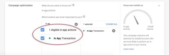 玩家卡在50关,UAC自动推送道具提高留存 最后,决定游戏收益的关键就在于如何辨别出高价值客户,进而提高他们在游戏内的消费。UAC可以导入玩家付费金额作为ROI优化目标,然后帮助开发者自动寻找更多游戏内外的高价值付费玩家——注意,是连其他游戏里的高价值玩家都会给你一起找来哦。 操作实例: 游戏推出之后假设你希望找到更多愿意付20美元升级的高价值玩家,但是同时也不放弃继续让更多人安装和试玩游戏。此时你只需要在UAC设置中建立一个新的广告活动,将这个活动的目标设为“App内活动”,并将自己的CPA设为20美元,和买家升级的付费金额相同;然后你调低自己以“安装量”为目标的第一个广告活动的CPI和整体预算。AdWords马上就知道你现在更希望找到游戏内付费用户,接下来的事情就交给UAC就行了。