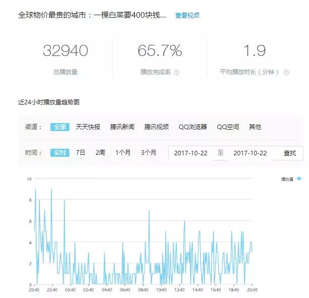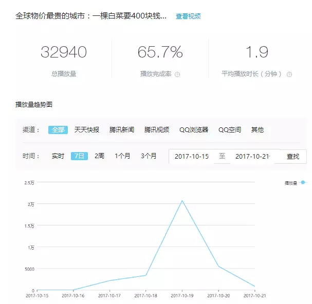 企鹅号的视频,要在2-3日之后播放量才会达到顶峰,和企鹅号的推荐机制有关。 而且每个渠道的播放量是不同的。比如,企鹅号内部还有一个初始推荐量,如果一天之后达到了平均播放率,播放完成度,播放时长等指标,那么第二天或第三天会给予更多的推荐量。 企鹅号因为用户数据不全,暂没有运营价值。