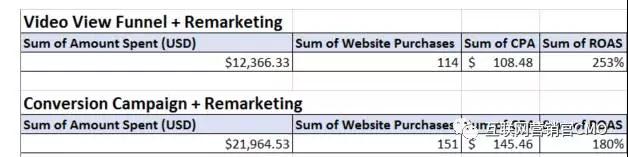 结果显而易见。这些是使用视频渠道和再营销的结果,而转化广告系列以及他们依赖的再营销的结果如下: