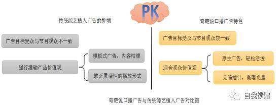 总结传统广告与奇葩说新式广告如下: