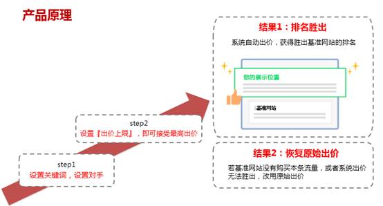 指定一个目标网站(即同行网站-竞争对手),给出一个上限出价,让系统出价调整排名,达到您的网站广告排名高于目标网站广告排名的目的。 三、产品原理: 设置好排名胜出贵州危机公关公司出价策略后会有2种结果,即排名胜出和恢复原始出价。 1、排名胜出:系统自动出价,排名胜出,优于指定同行网站排名; 2、恢复原始出价:当目标网站(即同行网站/基准网站)没有购买本条流量或者系统出价系数过低,无法胜出时,改用关键词的原始出价,正常竞价,排名胜出出价策略暂时失效。