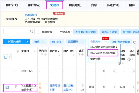 四、后台操作入口: 1、关键词界面-出价策略-排名胜出出价策略
