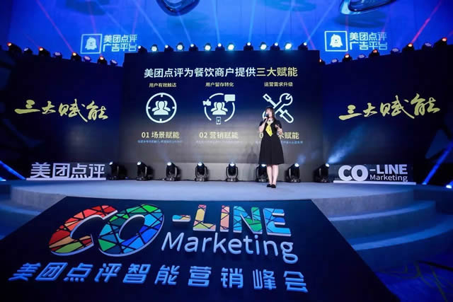 美团点评餐饮平台战略大客户总经理孙红霞女士演讲 在与商户的长期沟通中,孙红霞发现用户有效触达、用户留存转化以及运营需求升级已成为餐饮行业提及最多的三大痛点。作为餐饮品牌首选合作伙伴,作为致力于帮助客户做好生意的营销平台,美团点评用科技和创新引领着餐饮行业商业模式的革新,针对三大痛点顺势提出“三大赋能”。 据了解,美团点评的三重赋能首先是场景赋能,将发挥到餐平台“最大吃货聚集地平台”、“最权威用户觅食指南”、“最顺畅引流消费场景”三大优势,搭建多维场景触点,精准捕捉目标用户;其次是营销赋能,借助Co-Line Marketing联动B端商户和各大品牌,帮助商户打造线上、线下一体化的全场景营销,建立餐饮营销正循环——从门店的广告内容展示、交易到口碑积累、门店的综合分值。同时,美团点评围绕以消费者为中心的生活全场景,将餐饮与电影、周边游等场景结合,打造“餐饮+”;最后是技术赋能,作为创新主导的互联网企业,领先的技术也是美团点评平台的一大优势,美团点评运用技术为商户提供强大运营支撑,包括效果广告的智能投放、开放全方位的数据服务等。 互联网“下半场”最核心的概念就是用千人千面的方式来满足不同人的不同需求,作为全球领先的一站式生活服务平台,赋能背后,美团点评更愿意成为商家服务用户的最佳助力器,共同推动餐饮O2O行业的全链路升级,共同推进新消费、新生活、新服务、新餐饮的发展!